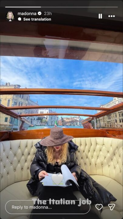 主要キャストとして実写作品に出演するのは2002年公開の映画『スウェプト・アウェイ』以来となるマドンナだが、インスタグラムのストーリーでもヴェネツィアの有名な運河でゴンドラに乗りながら台本を読んでいる写真を投稿している。